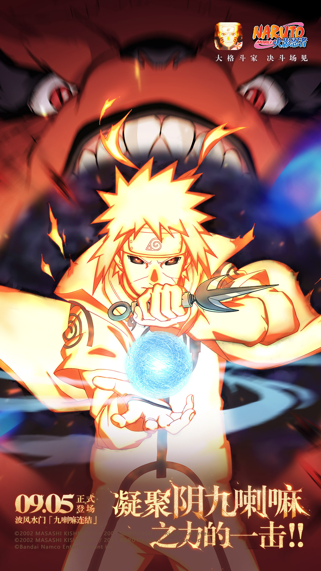 《火影忍者》手游新版本来袭。新忍者登场,登录动画、加载界面和决斗场背景更换为波风水门[九喇嘛连结]主题,忍者平衡性调整。