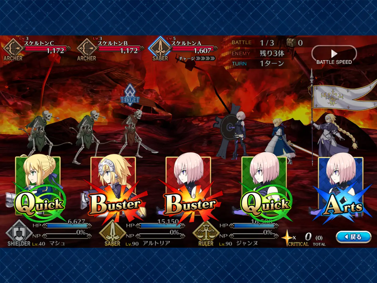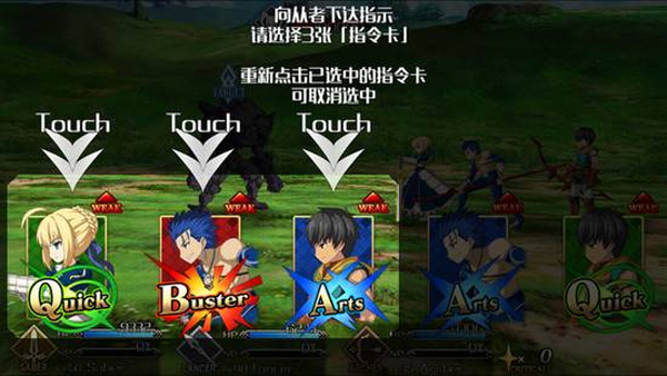游戏的设定中每一个英灵都拥有战斗指令的设定,也就是我们在实战中所需要点选的战斗卡牌,它们分别是绿色的Quick、蓝色的Arts、红色的Buster三种,不同烈性英灵卡片的组成是不一样的,比如呆毛王偏重蓝色的Arts、狂战士偏重红色的Buster等等。