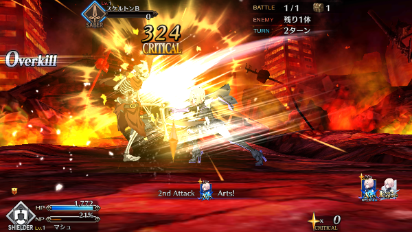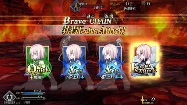战斗中,我放出战3个人(包括协力玩家在内)每次攻击只能选择三个指令,玩家需要在使用哪个角色和如何使用Quick、Arts、Buster卡片的组合中抉择,不同颜色的排序和组合会得到不同的效果。同时,但某个英灵的集气槽满的时候,就能够发动必杀技能,不仅如此,通过观察本回合行动的角色和卡片类型,玩家可以合理地安排各个英灵的技能和Master技能,配合技能来让本回合规避伤害、增加攻击力。