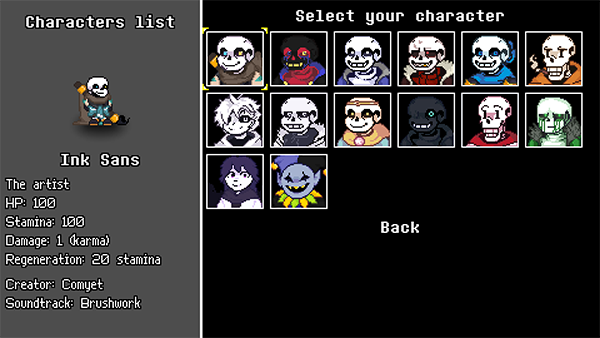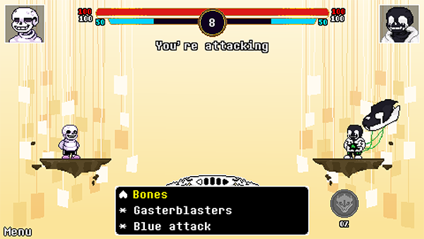 《传说之下逆境对决》是一款基于《传说之下》世界观制作的一款回合制弹幕躲避游戏。画风上延续了传说之下经典的怀旧像素风格,玩法上为东方风格的弹幕躲避。游戏提供了多位不同的角色,他们的技能和能力都有所不同,玩家可以根据不同的角色选择自己的战斗风格来进行对战。
