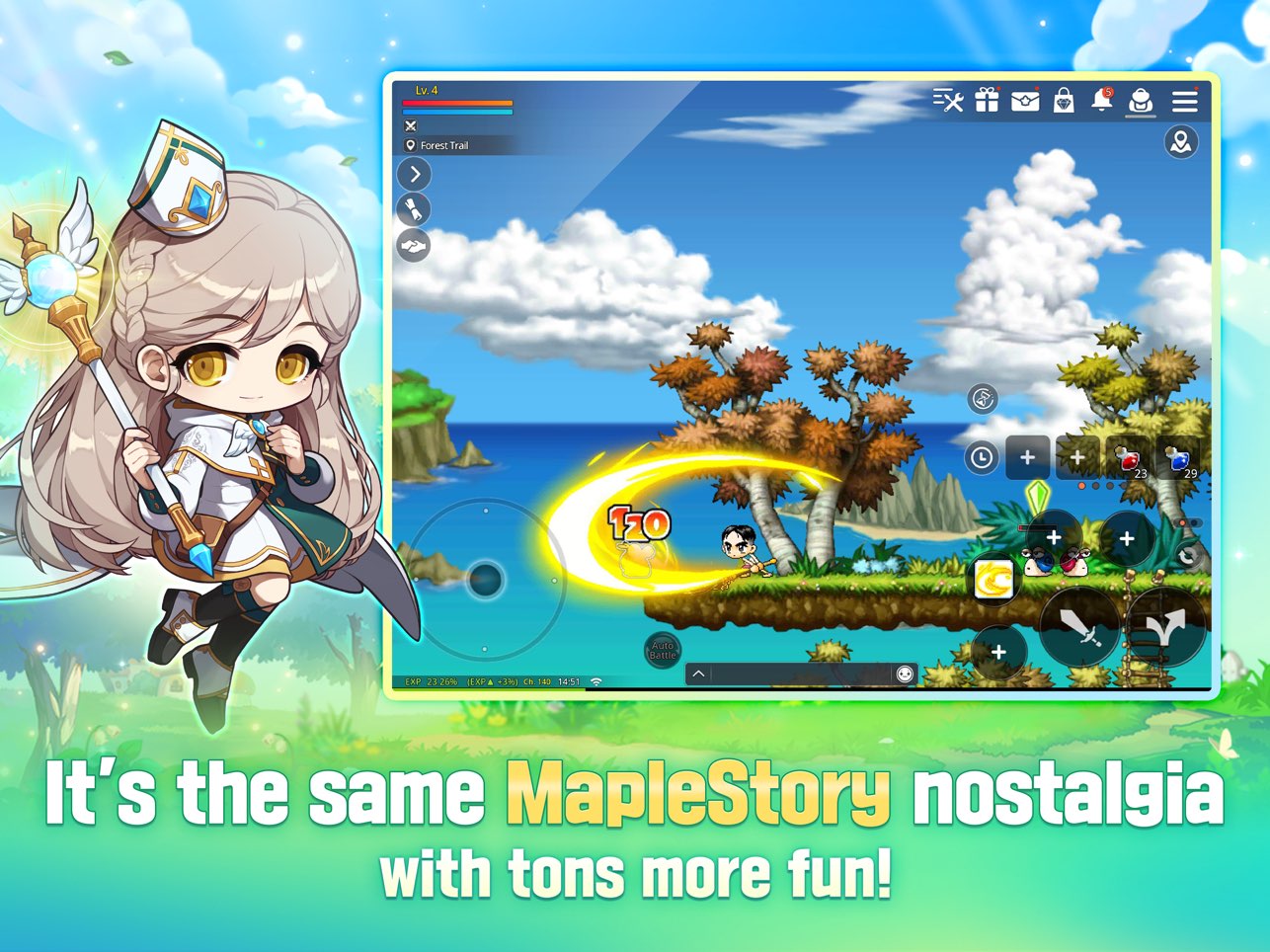 《冒险岛枫之传说国际服》是一款根据同名PC版线上游戏《冒险岛》(又名:枫之谷)改编而来的多人在线MMORPG游戏。游戏采用了线上游戏的复古情怀像素风制作,同样保留了2D横版的界面。游戏提供五个职业可供玩家选择,还有工会和社交功能,让玩家可以呼朋引伴一起攻略副本,或者挑战竞技场。同时,在养成方面也是乐趣满满,玩家可以拥有自己的宠物、装修自己的房屋等有趣功能。