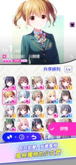 - 不是简单的节奏游戏,而是搭载空闲系统的偶像模拟RPG,可以享受热闹的舞台。