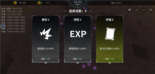 大致原则是,当你的秒伤远高于推荐的时候,选择经验和祈福,否则选秒伤牌。选牌时一般选择等级高的卡或者+2的卡,如果都差不多选择牌少的那个。如果秒伤比较吃紧可以去凑羁绊提战力。