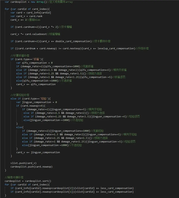 大致想法就是 1学前 里所说的选卡逻辑,并量化出来了,计算卡牌价值的伪代码如下