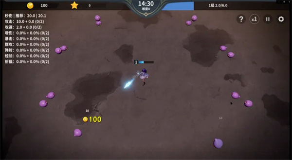 3、游戏开始后,英雄会自动攻击,击败敌人后,英雄会获得经验;