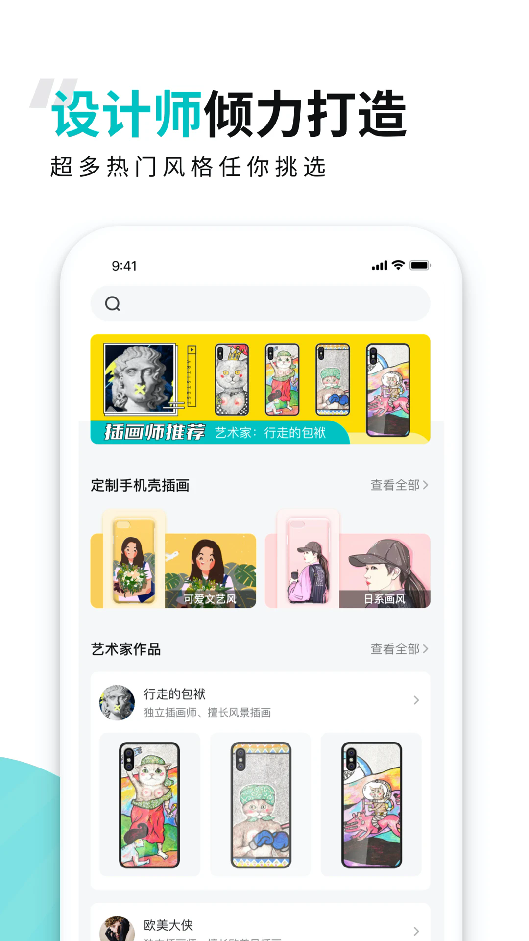 通过主动搜索自己喜欢的手机壳产品即可找到同款,得到想要的图画使用;