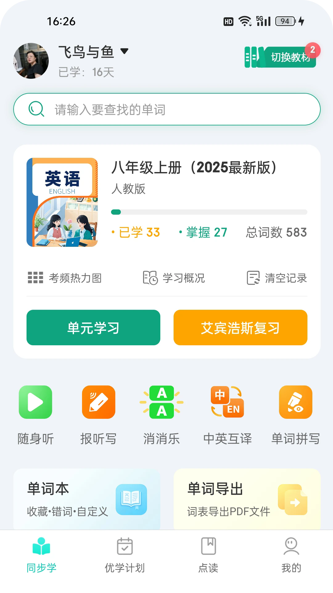 可以在这里查看自己的单词本,以后就能够快速的整理错词,及时进行单词记忆巩固;