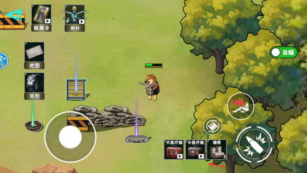 3、当你没血的时候点击下方医疗用品可以打药回血。