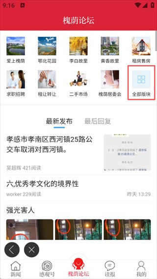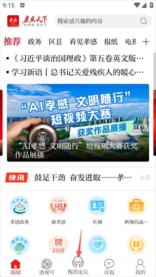 1、打开孝感天下App,点槐萌论坛板块