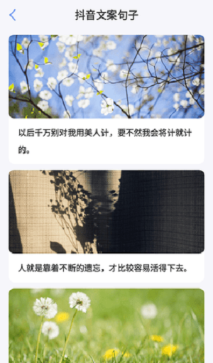 1、软件包含很多优秀的文案,方便用户在发布朋友圈等社交媒体时候使用。