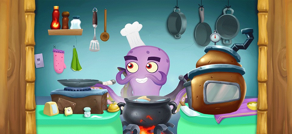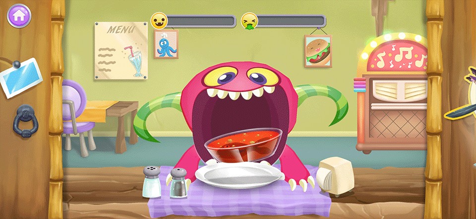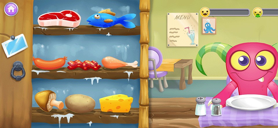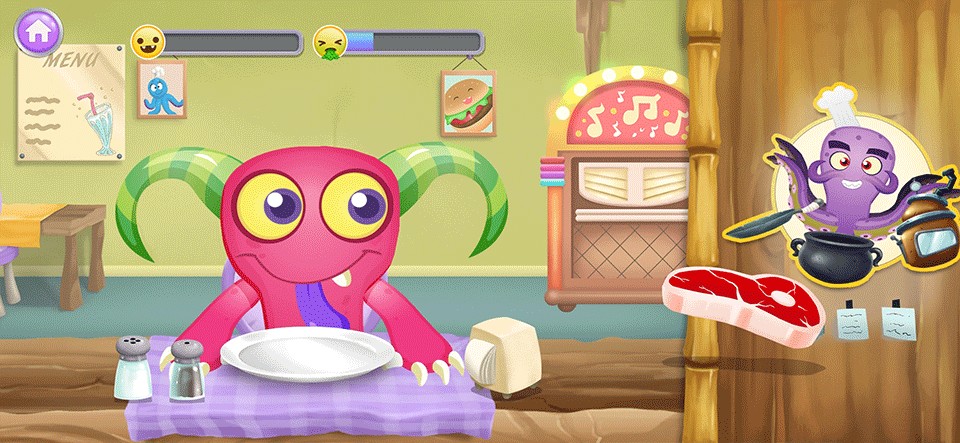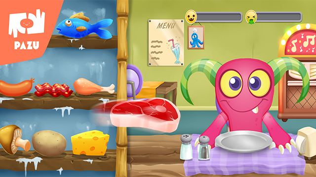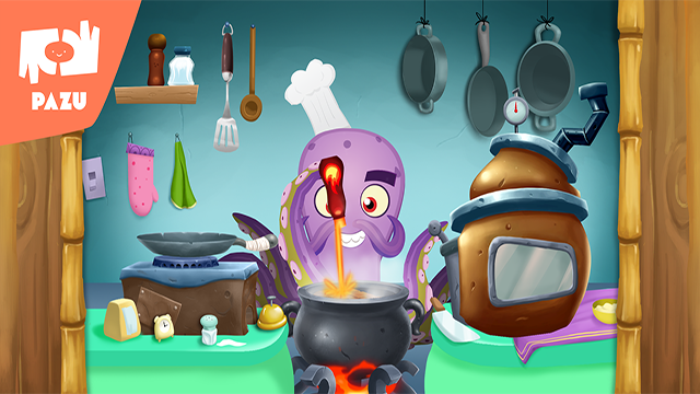 《怪物厨师》(Monster Chef)是一款十分适合幼儿玩耍的烹饪经营类休闲益智游戏。游戏中,玩家们将扮演一位八爪鱼厨师,十分方便地利用许多条触手同时进行烹饪。玩家们需要为一群挑剔的怪物食客们制作餐点,需要严格按照他们的要求来准备,并且在他们享用完毕后收拾好餐桌,等待其他客人的到来。游戏还能够进行店铺升级,以及随着经营时间和营业额达到要求,会解锁更多新菜谱。