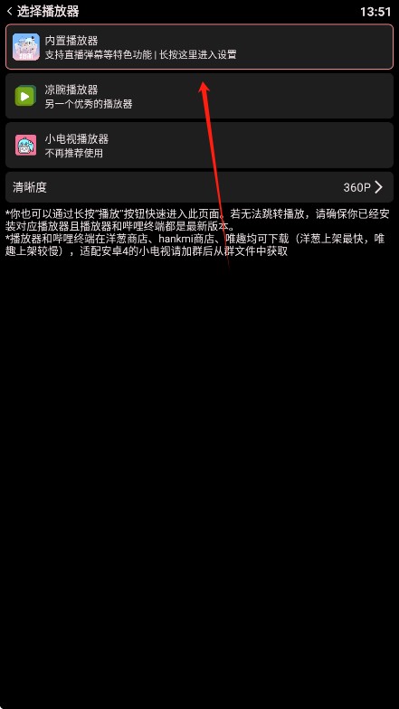 6、然后点击播放,选择播放器,这里推荐大家使用内置播放器