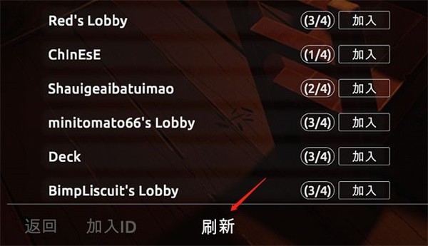 如房间列表已满,可手动点击底部按钮刷新房间列表。