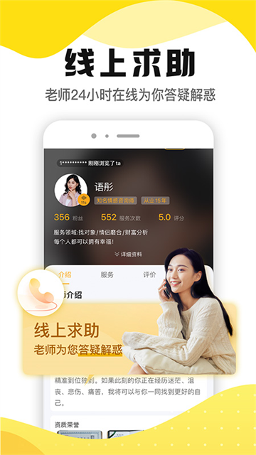 《听芝》是一款功能强大、十分好用的情感咨询类应用软件。通过这款软件,用户们能够进行关于情感方面的问题,用户们可以举例具体事件,也可以形容两个人性格,不管是分手、或者是闹矛盾、两人不契合等等,都有专业的心理医生团队为用户们进行解答。软件还提供一对一连线咨询服务,财富、情感、事业、婚恋,都可以解答。软件还设有线上求助平台,用户们可以编辑好文字,有老师24小时在线为用户们答疑。