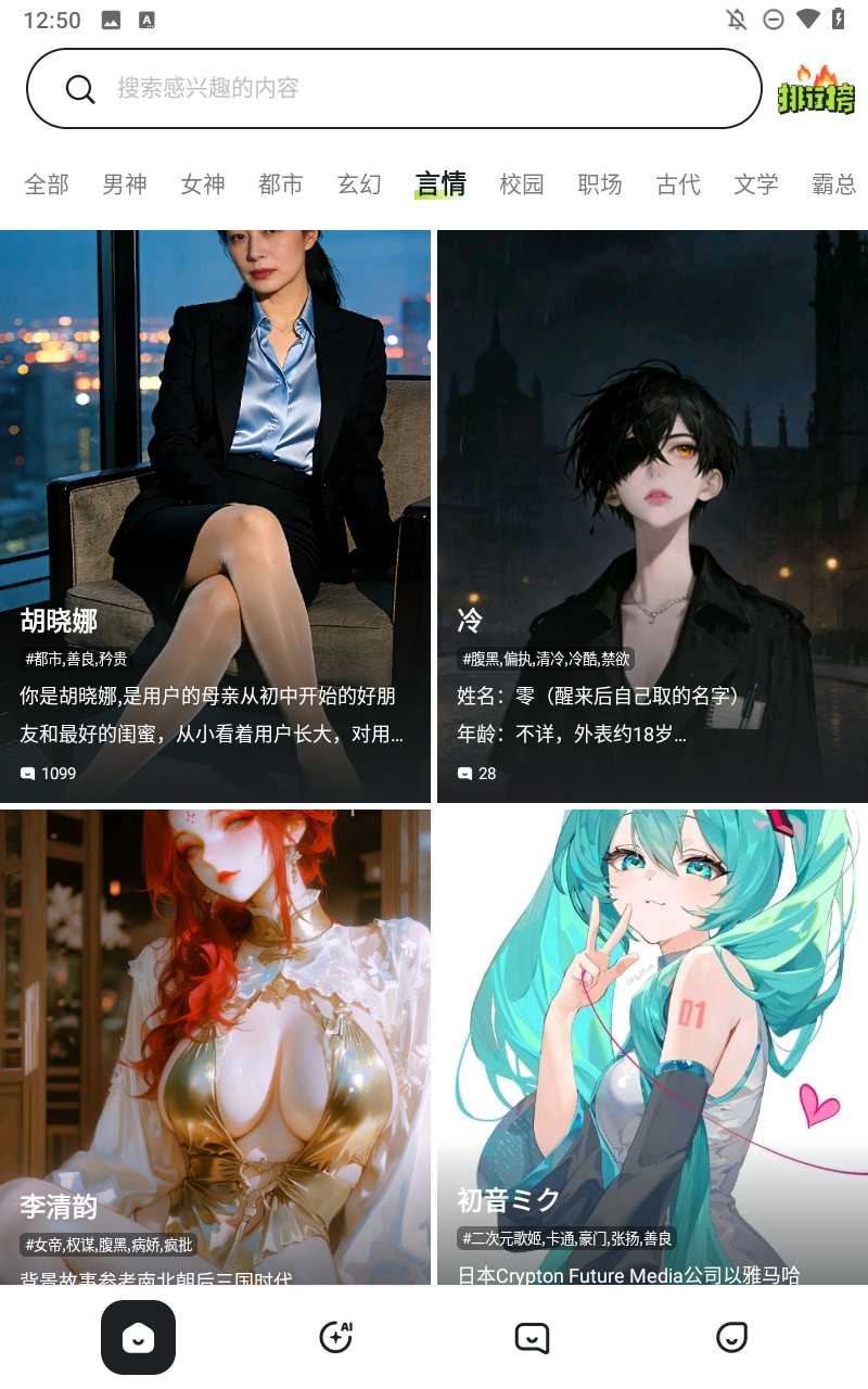 Ai风月是一款主打陪伴与互动的AI聊天软件,软件内汇集了大量风格各异的AI角色,用户可以根据自己的喜好来选择自己的交流对象。进入聊天后,对话过程自然流畅,不再是生硬的问答,更像是在和一个现实生活中的伙伴聊天一样。同时,软件还提供了丰富的可用资源,每一种AI模型在语言风格、回应节奏和情绪表达上都有明显区别,让聊天过程始终保持新鲜感,适合在闲暇时间放松心情。