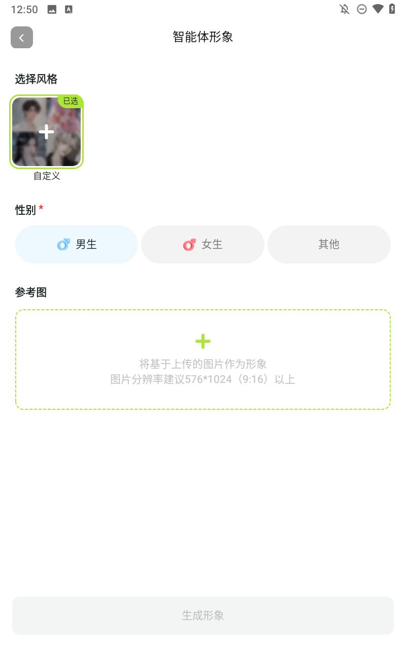 3、还可以自定义上传参考图哦,然后点击“生成形象”。