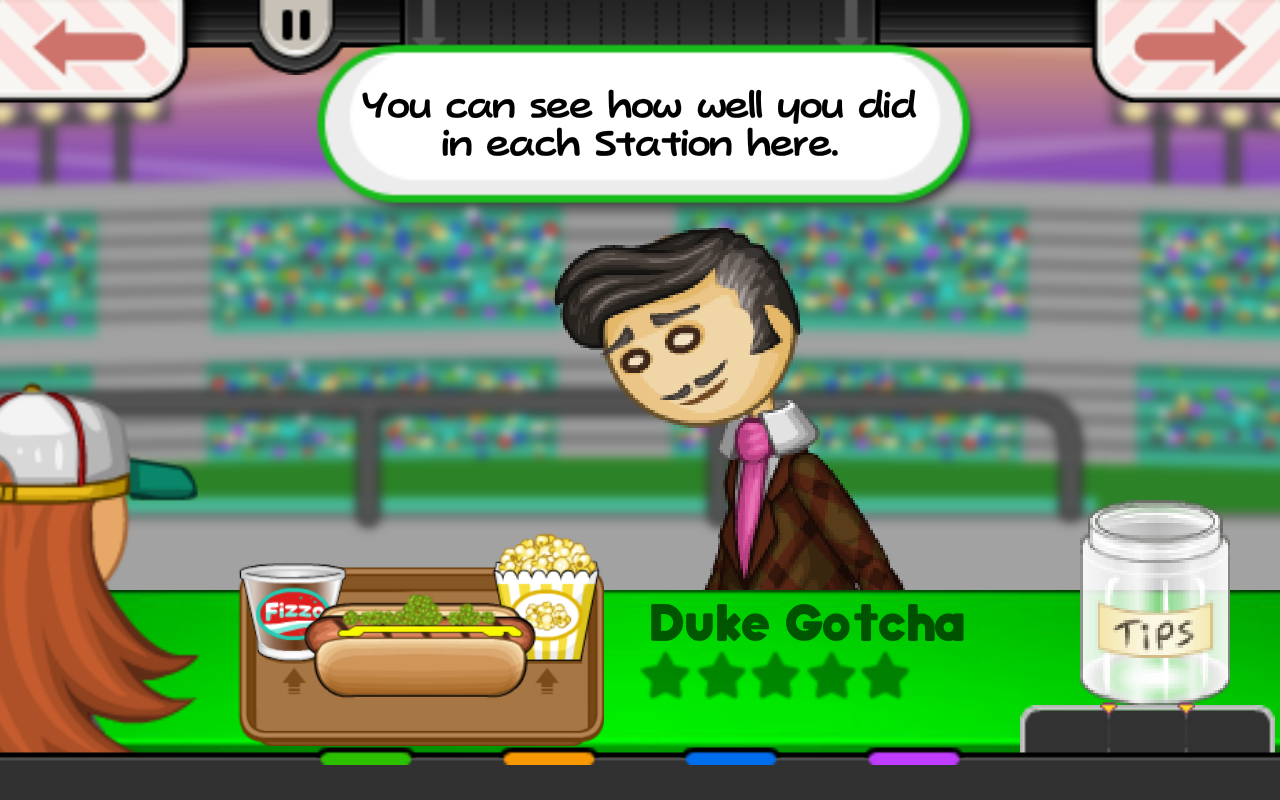 老爹热狗店是老爹系列的经营游戏的另一部佳作,这会爸爸路易在比赛赛场周围开了一家热狗店,正好为顾客提供了方便,顾客看比赛看饿了还可以来小店消费一下。游戏的主人公因为没有抢到比赛的票,决定剑走偏锋来到比赛现场的小店里当员工这样既可以赚外快还可以看比赛,简直是双赢的存在。而玩家就要操控游戏的主人公经营这家热狗店。我们可以看到热狗店的设备十分的齐全,但随着自己慢慢的经营,我们可以解锁更多的食材还可以升级厨房的设施,让经营的效率大大的提高。我们需要时时刻刻以顾客的要求为先,完成顾客的订单,才能够获取丰富的收益。
