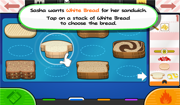 3、选择顾客要求的面包和奶酪。