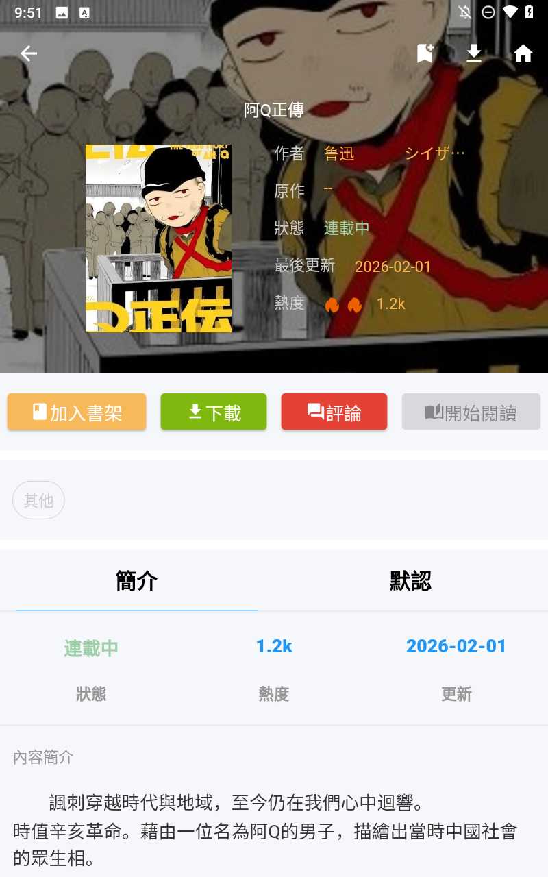 2、选中目标作品后,点击【第一卷】开始阅读,此外,你也可以下载出来离线阅读。