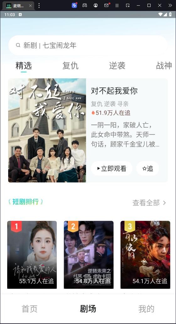 1、进入麦萌短剧后就会为用户推荐全网热门短剧。