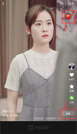 3、播放时点击选集切换剧集,可使用倍速与分享功能。