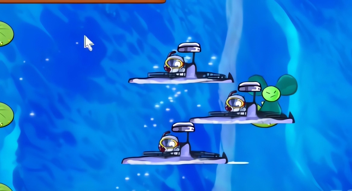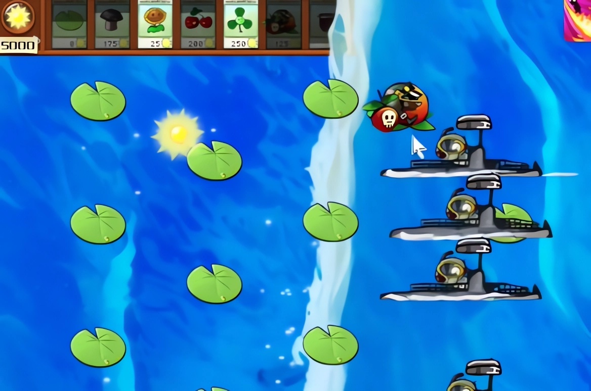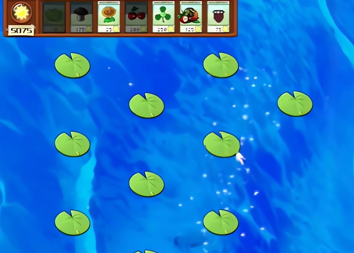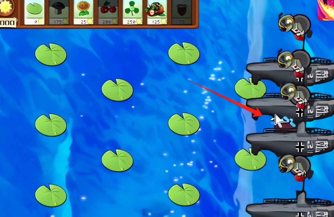 2、首批僵尸来的时候在正中间位置放一颗水雷。