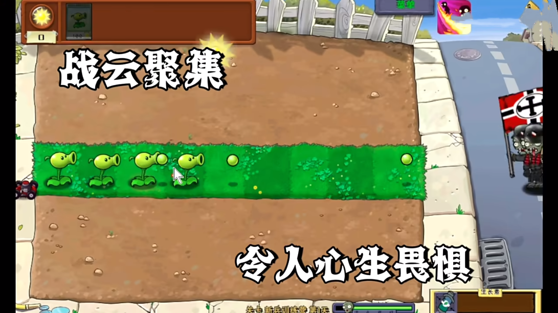 4、在僵尸的后方放荷叶+三叶草,可以把僵尸往后吹。植物都在冷却的时候可以用这种方法拖延下时间。