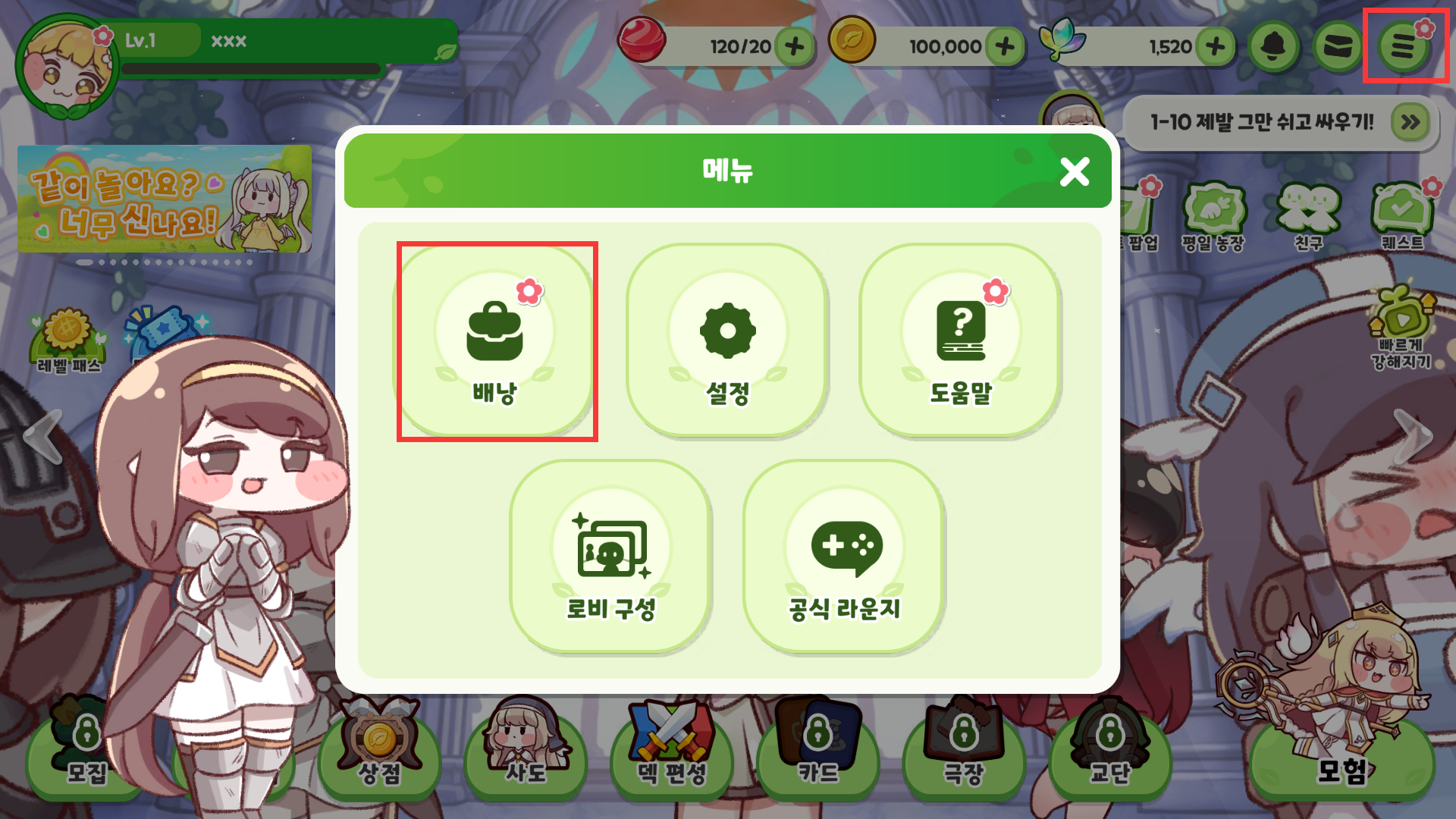 回到主页面,点击右上角菜单,选则背包